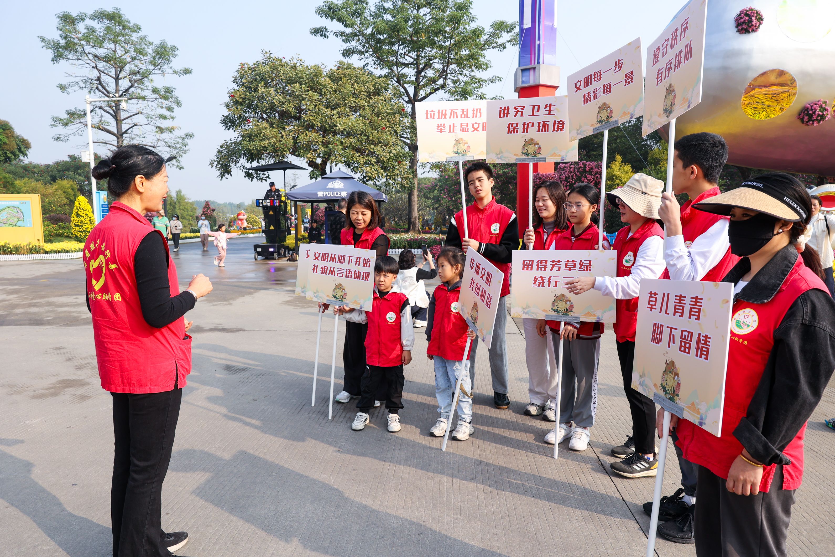 李煥賢帶領(lǐng)志愿者到小欖菊花園開(kāi)展親子志愿服務(wù)。市文明辦供圖