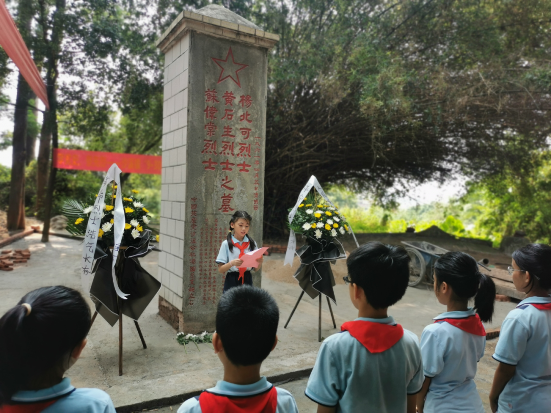 少先隊(duì)員代表、中心小學(xué)學(xué)生黃可馨為烈士們獻(xiàn)詞:作為未來祖國接班人,身上流淌著的是先輩們的紅色基因,傳承的是紅色的革命的理想,應(yīng)該養(yǎng)成文明進(jìn)取的習(xí)慣,學(xué)習(xí)好各門文化知識,掌握好各種科學(xué)技術(shù),完善自己的思想,凈化自己的心靈。維護(hù)民族尊嚴(yán)和國家榮譽(yù),將國家的明天建設(shè)得更加美好!