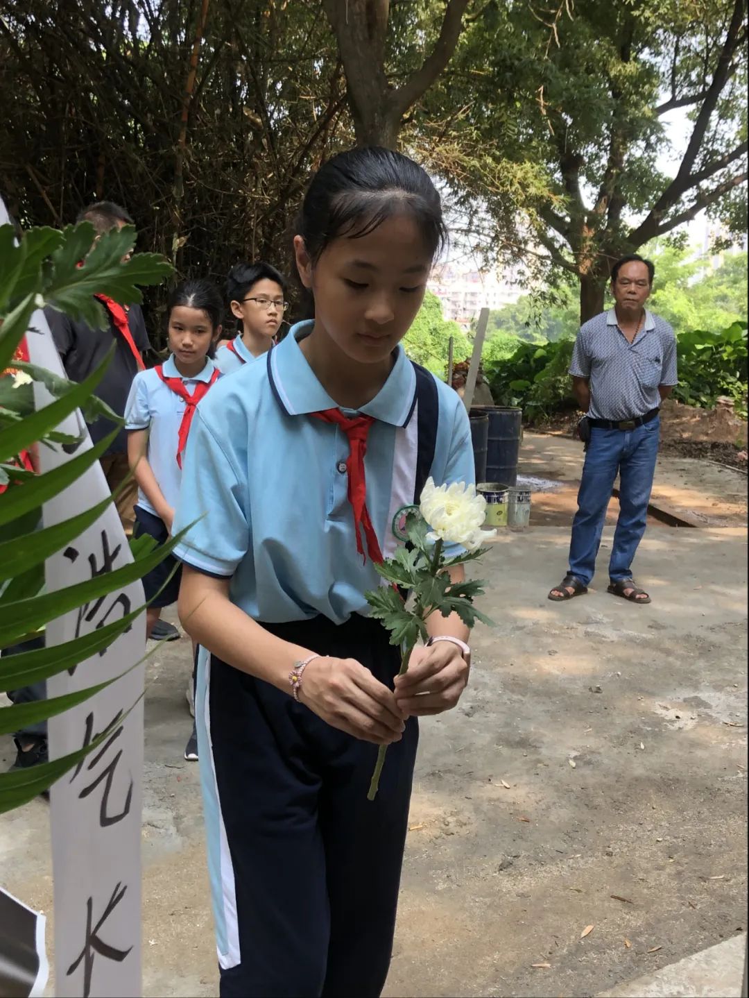 ▲在沙溪鎮(zhèn)黨委委員李海龍、副鎮(zhèn)長候選人余添宏帶領(lǐng)下,按順序依次向楊麗容烈士雕塑獻(xiàn)花。