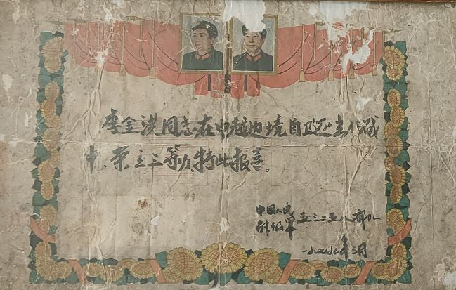 僅用半小時(shí),尖刀班就消滅了4名敵人、俘虜1名,繳獲半自動步槍2支,并且全班無一人員傷亡,打下一場漂亮的伏擊戰(zhàn)。靠松山、東溪、高平、茶靈、廣淵、下瑯……對越自衛(wèi)反擊戰(zhàn)期間,李金洪保家衛(wèi)國浴血奮戰(zhàn),出色地完成了上級交給的護(hù)衛(wèi)和戰(zhàn)斗任務(wù),榮立個人三等功1次。