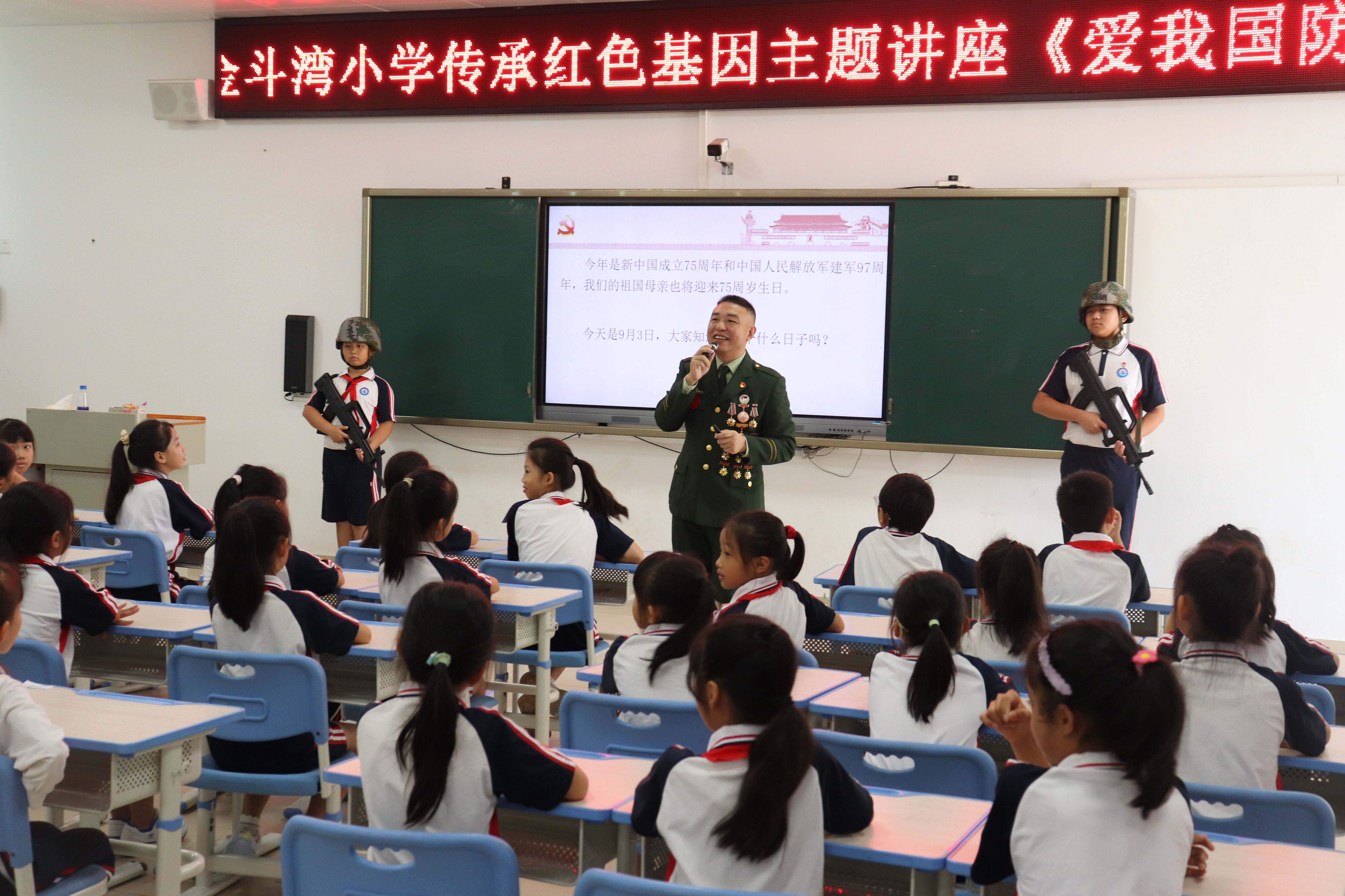 2024年9月3日是中國(guó)人民抗日戰(zhàn)爭(zhēng)暨世界反法西斯戰(zhàn)爭(zhēng)勝利79周年紀(jì)念日。連日來,中山市退役軍人事務(wù)局在全市范圍內(nèi)精心組織“愛我國(guó)防”主題宣講活動(dòng)。 在坦洲鎮(zhèn)金斗灣小學(xué),坦洲鎮(zhèn)“老兵宣講團(tuán)”成員梁華與學(xué)生們展開互動(dòng),通過提問的方式引導(dǎo)學(xué)生銘記歷史、傳承紅色基因。  坦洲鎮(zhèn)“老兵宣講團(tuán)”成員梁華與學(xué)生們互動(dòng)。受訪者供圖 隨后,中山市全民國(guó)防教育宣講團(tuán)成員孫宏寧走上講臺(tái),分享了他與戰(zhàn)友王偉的軍旅生涯和感人經(jīng)歷,以生動(dòng)事例激發(fā)青少年一代的愛國(guó)情懷。  中山市全民國(guó)防教育宣講團(tuán)成員孫宏寧在講臺(tái)上演講。受訪者供圖 參加此次宣講活動(dòng)的學(xué)生黃梓軒激動(dòng)地說:“國(guó)防教育對(duì)我們每個(gè)人來說都至關(guān)重要,我立志要成為一名軍人,為保衛(wèi)祖國(guó)貢獻(xiàn)自己的力量?!绷硪晃粚W(xué)生陳譽(yù)丹也深受觸動(dòng):“這些紅色故事讓我倍感振奮,我們要向老兵們學(xué)習(xí),努力成為一個(gè)有擔(dān)當(dāng)有責(zé)任感的愛國(guó)者?!?/p> 據(jù)介紹,此次主題宣講活動(dòng)廣泛聯(lián)動(dòng)坦洲鎮(zhèn)、南區(qū)街道、西區(qū)街道、五桂山街道、三鄉(xiāng)鎮(zhèn)等多個(gè)鎮(zhèn)街,形成了全市聯(lián)動(dòng)的良好局面。 見習(xí)生 陳詩煖 記者 李鑫 ◆編輯:龍慧◆二審:陳吉春◆三審:周亞平 |