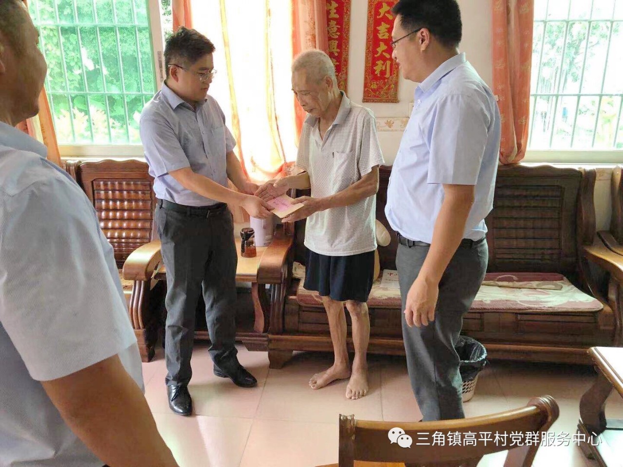 7月22日至26日,村民兵連長陳德洪和鎮(zhèn)人大代表分別到重點(diǎn)優(yōu)撫對(duì)象和退役軍人家中走訪慰問。此外,村黨委組織各個(gè)村民小組長分別到其他現(xiàn)役軍人和退役軍人家中走訪慰問。