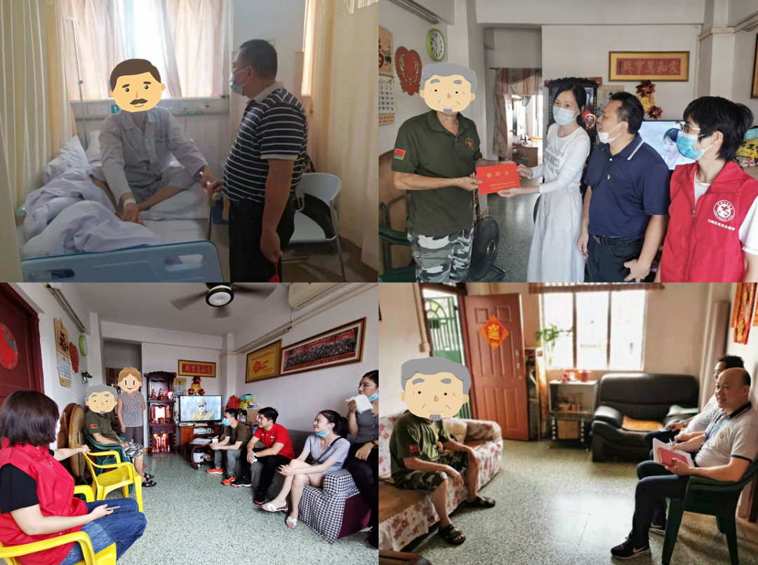 吳容基于1978年入伍,是石岐參戰(zhàn)退役軍人。妻子由于身體原因無法外出工作,小兒子也沒有固定工作,全家依賴吳容基的退休金過日子,房子也是租住的。2019年8月,吳容基參加體檢時查出患有肝癌,手術(shù)、吃藥、化療等產(chǎn)生的巨額費用讓全家壓力劇增。 民權(quán)社區(qū)和石岐退役軍人服務(wù)中心了解到吳容基的情況后,想方設(shè)法為其解決實際困難,幫助其走出困境,除了按照優(yōu)撫對象醫(yī)療費用比例為其報銷了醫(yī)藥費用外,還先后幫助吳容基申請了街道優(yōu)撫對象臨時困難救助、市臨困救助、市特別醫(yī)療救助、市紅十字會救助等多項幫扶救助,救助金額達(dá)到1.6萬余元,部分緩解了其家庭經(jīng)濟壓力。 逢年過節(jié),石岐公共服務(wù)辦、退役軍人服務(wù)中心、社區(qū)以及市青年企業(yè)家協(xié)會等還專程去探訪慰問。吳容基重病住院期間,民權(quán)社區(qū)黨委書記和民政專干專門到醫(yī)院探訪,傳達(dá)黨和政府對參戰(zhàn)老兵的關(guān)懷。
