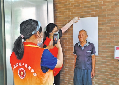 ▲西區(qū)街道退役軍人服務(wù)中心工作人員上門(mén)為老兵辦理優(yōu)待證。