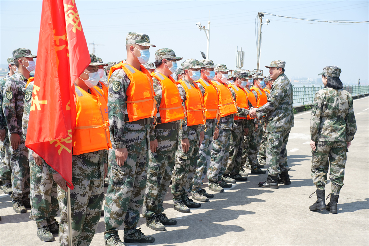 民眾街道河岸線長(zhǎng)、水域廣,與港澳水運(yùn)往來密切,針對(duì)當(dāng)前嚴(yán)峻的岸線疫情防控形勢(shì),相關(guān)部門以最大的決心、最有力的舉措,筑牢水上防疫安全屏障。劉燦瑩、李健一行趁民眾街道100多名民兵、公安民警交班集結(jié)之際,前往慰問。劉燦瑩要求大家進(jìn)一步加強(qiáng)岸線巡查,加強(qiáng)“兩反”力度,切實(shí)從嚴(yán)做好防控工作。