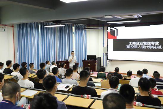 “狹路相逢勇者勝,在座的各位從繁忙的工作崗位上走出來,邁出繼續(xù)學(xué)習(xí)的關(guān)鍵一步,勇氣可嘉。三年后,相信大家一定會(huì)收獲知識(shí)、技能、學(xué)歷,更好地開啟新征程?!蓖艘圮娙爽F(xiàn)代學(xué)徒制項(xiàng)目開學(xué)典禮上,經(jīng)管學(xué)院院長肖紅在致辭中對(duì)新生們表示歡迎和祝賀,并表達(dá)了殷切期望,希望大家在求學(xué)期間,修德修身、克勤克儉、心懷理想,腳踏實(shí)地,融入多姿多彩的校園生活,在學(xué)生當(dāng)中彰顯軍人本色和榜樣力量。 市退役軍人事務(wù)局相關(guān)負(fù)責(zé)人對(duì)項(xiàng)目順利開班表示祝賀,對(duì)學(xué)院在項(xiàng)目申報(bào)、招生等工作中的辛勤付出表示衷心感謝。他介紹了項(xiàng)目實(shí)施的背景,指出開展退役軍人現(xiàn)代學(xué)徒制教育,是退役軍人安置工作的一項(xiàng)重要內(nèi)容,通過現(xiàn)代學(xué)徒制,讓大家成為全日制大學(xué)生,進(jìn)行正規(guī)系統(tǒng)的高等職業(yè)教育,是黨和政府送給同學(xué)們的一份沉甸甸的“大禮包”。同時(shí),要求新生們盡快適應(yīng)由士兵到大學(xué)生的角色轉(zhuǎn)變,勤學(xué)善思,掌握就業(yè)創(chuàng)業(yè)本領(lǐng),發(fā)揚(yáng)軍隊(duì)能打勝仗的優(yōu)良傳統(tǒng),爭創(chuàng)佳績,為祖國和地方經(jīng)濟(jì)建設(shè)再立新功。 學(xué)院工商管理專業(yè)主任沈孟康介紹了學(xué)校和學(xué)院概況,就學(xué)生日常管理、教學(xué)內(nèi)容、方式和計(jì)劃等作詳細(xì)說明。表示學(xué)校將采取在崗培養(yǎng)與學(xué)校培養(yǎng)相結(jié)合,堅(jiān)持“標(biāo)準(zhǔn)不降、模式多元、學(xué)制靈活”,線上與線下混合教學(xué),實(shí)行工學(xué)交替、靈活多元的教學(xué)模式。經(jīng)管學(xué)院已配備了教授、博士等“精銳”師資團(tuán),“量身定制”人才培養(yǎng)方案,全力保障“八一班”的教育教學(xué)質(zhì)量。