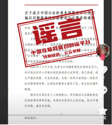 辟 謠 商務(wù)部發(fā)布聲明:從未發(fā)布《關(guān)于以舊換新惠民款補貼發(fā)放的公證通知》