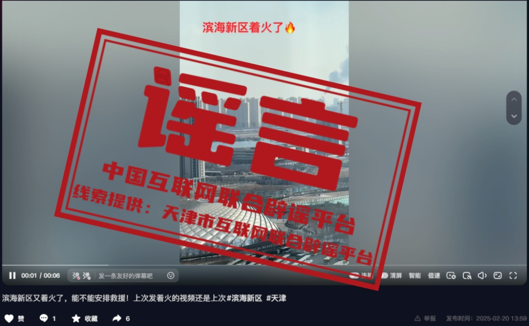 謠 言 天津濱海新區(qū)著火了?
