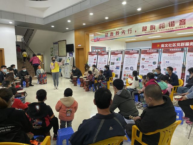 禁毒社工還通過(guò)音樂(lè)與禁毒結(jié)合的形式,把禁毒口號(hào)和禁毒知識(shí)融入鼓圈游戲,深化群眾對(duì)禁毒的認(rèn)知和印象。參與的群眾紛紛表示,現(xiàn)場(chǎng)氣氛融洽,寓教于樂(lè),在玩耍過(guò)程中學(xué)到不少禁毒知識(shí),提升了對(duì)毒品的認(rèn)知度。