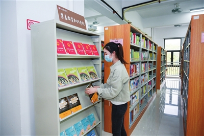 中山市桂山中學禁毒教育知識專柜前,工作人員正在整理禁毒圖書。 本報記者 易承樂 攝