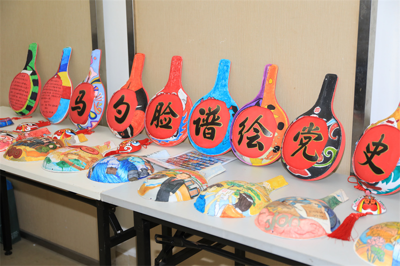中國共產(chǎn)黨成立100周年標識、井岡山勝利會師、南昌起義、嘉興游船上舉行的中共一大、萬里長征路……分享會現(xiàn)場,刻畫了一個個黨史故事的木瓢排列成行,十分引人注目?!斑@是國家級非物質(zhì)文化遺產(chǎn)——馬勺臉譜。它是陜西的傳統(tǒng)民間藝術(shù),以馬勺作‘紙’,將社火臉譜以彩繪的形式繪制在上面?!瘪R勺臉譜傳承者、沙溪中學老師馬世杰介紹。作為一名美術(shù)老師,馬世杰通過民間藝術(shù)的再創(chuàng)新來引導學生學習黨史,在他的帶領(lǐng)下,沙溪中學的學生將南粵特色、中山元素、國風動漫等融入馬勺臉譜的創(chuàng)作中?!袄L制黨史故事前,我們查閱了大量資料,并向?qū)<覍W者請教,在創(chuàng)作中引導學生們了解、學習黨史?!?/p>